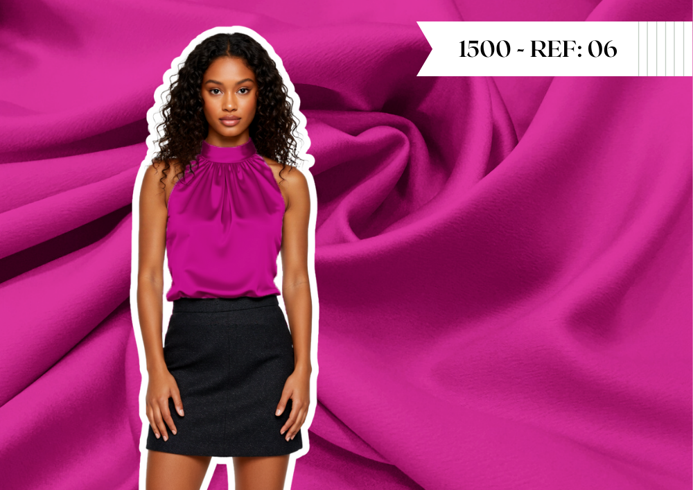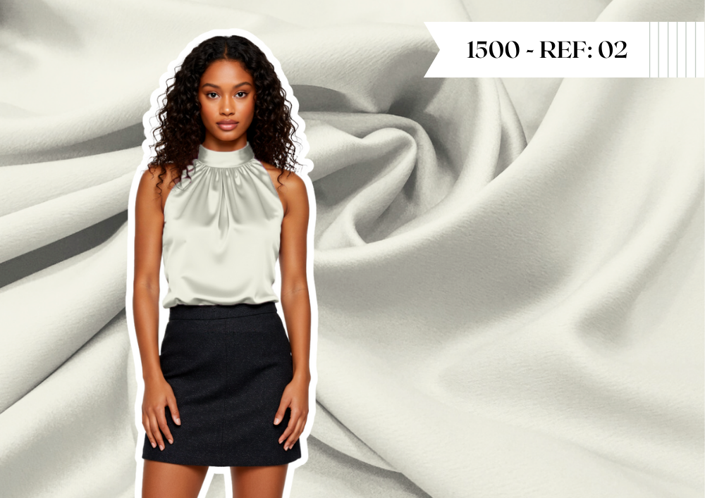 O Crepe Amanda é um tecido clássico e muito querido na moda festa, mas também se destaca pela sua versatilidade em produções casuais. Ele possui uma textura semelhante ao cetim em um dos lados, porém com caimento diferente, mais leve e fluido. O outro lado, fosco, também é perfeito para peças do dia a dia.